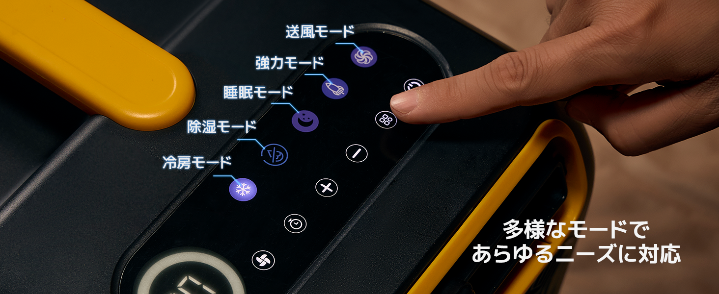 送風、冷房、睡眠、強力冷房、除湿の5種類のモードを搭載しています。一台でさまざまなニーズに対応し、お好みの設定に簡単に切り替えることができます。これにより、最適な室内環境を実現します。