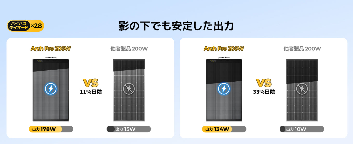 さまざまな高効率発電技術を融合: 28個のバイパスダイオードと16BB技術を搭載し、影がかかっても驚異的な発電効率を維持します!