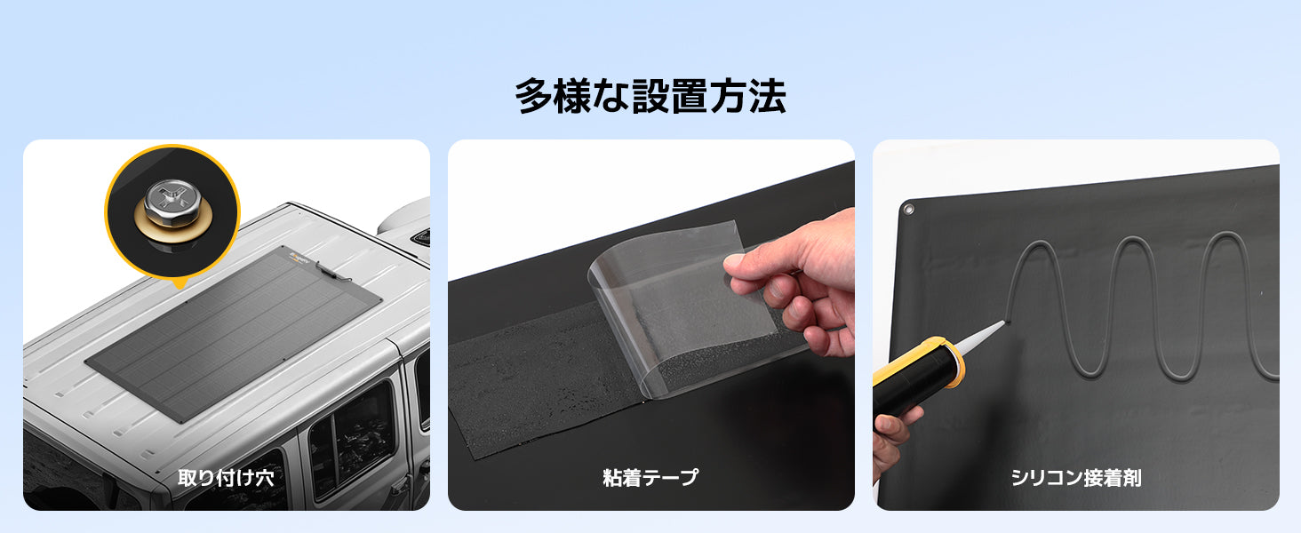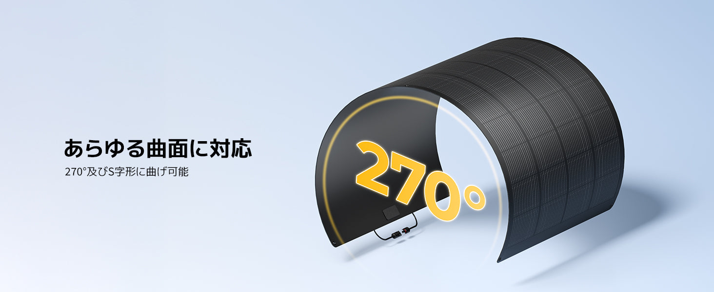 簡単設置、軽量で持ち運び便利!270度曲げ対応&過酷な環境でも安心、手軽に始める次世代太陽光発電!