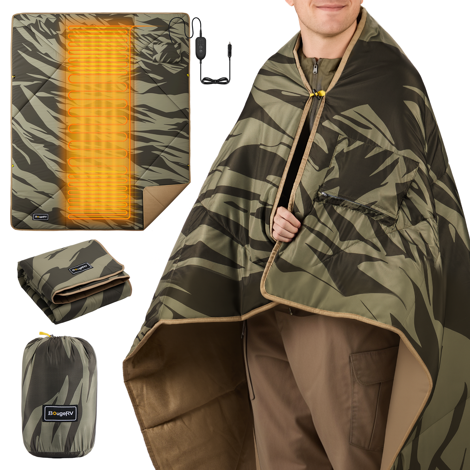 BougeRV 12V電気毛布│コンパクト・軽量・20時間連続使用可能 (グリーン)