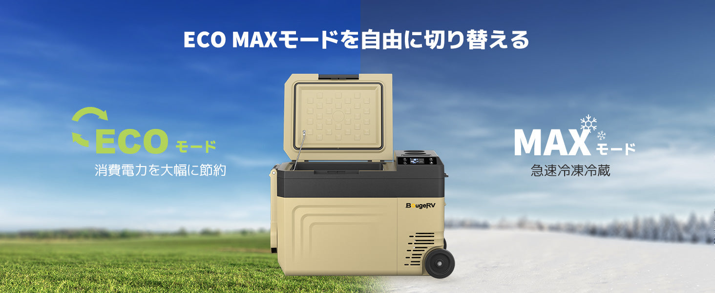 左右の部屋の温度は別々に設定できるため、片方の部屋でアイスクリームや冷凍食品を凍らせながら、もう片方の部屋で飲み物や果物を冷やすことが可能です。コンプレッサー式であり、温度設定範囲は-20℃から20℃まで可能です。(この機能はBougeRV CRD Mini 24Lのみです。)19Lも24LもECOモードとMAXモードが搭載されており、MAXモードでは60Wの消費電力で高速冷凍が可能であり、一方ECOモードでは45Wの消費電力で省エネが可能です。