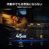 運転音はわずか45dBの静音設計を採用。車内やキャンプ場、夜間の車中泊でも音が気にならず、快適に過ごせます。特に長時間使用する場合でも、静かでストレスフリーな環境を提供します。