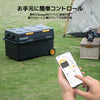 専用アプリで温度管理や電力監視が可能(±1℃精度で表示)。また、大型キャスターと伸縮ハンドルを装備しており、段差を越える際もスムーズ。