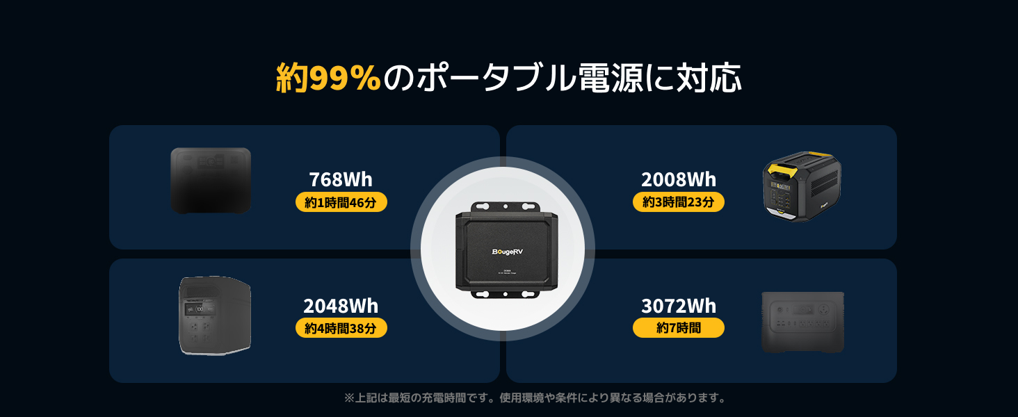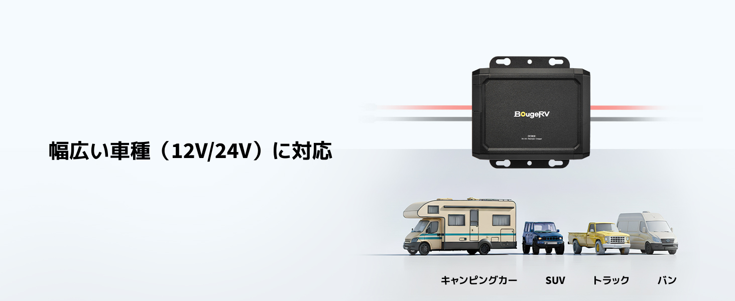 市販の99%のポータブル電源に対応!12V/24V車両でも使用可能、適合性の心配なし!