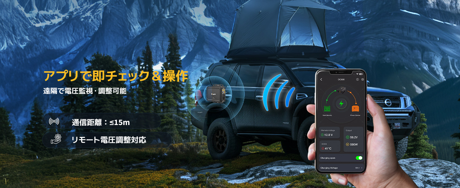 | 保管温度範囲 | -20℃~60℃ | 12Vバッテリー出力電圧範囲 | 15V~60V(アプリで調整可能) |