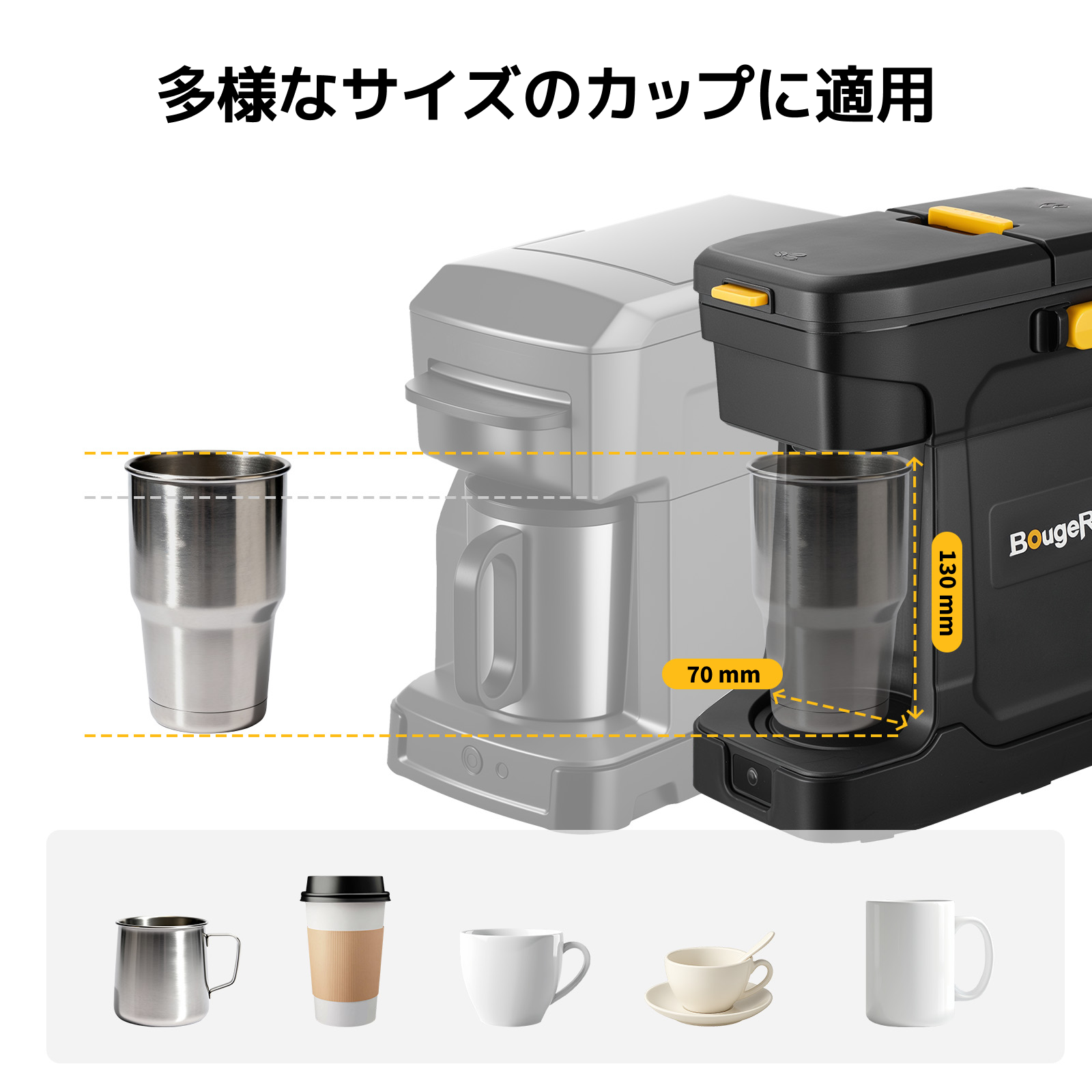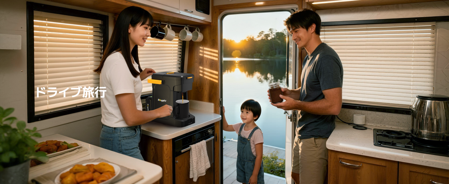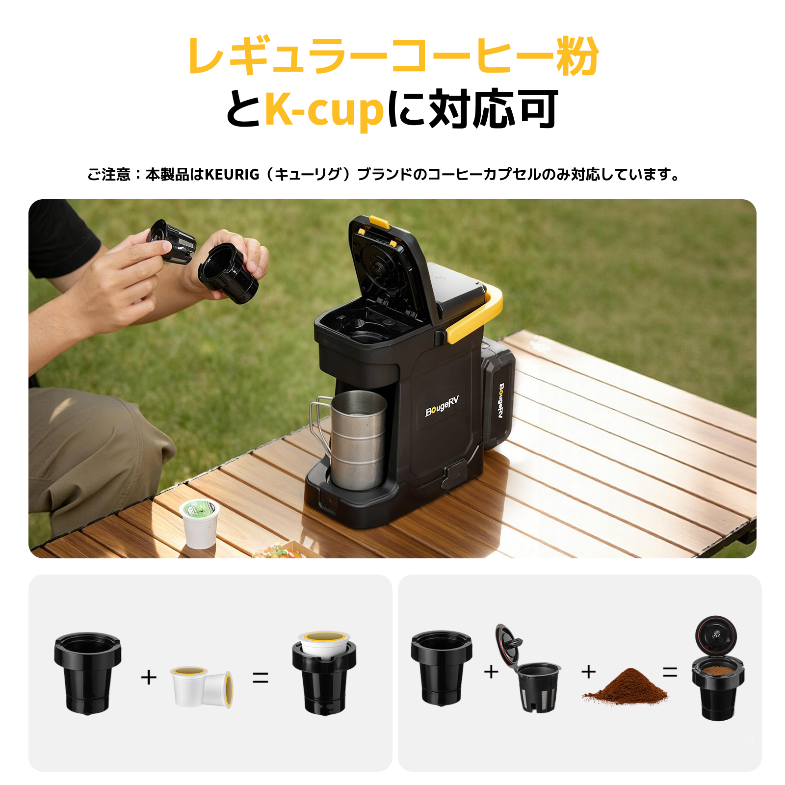 BougeRV ポータブルコーヒーメーカー|粉・K-Cup対応 AC/バッテリー両用