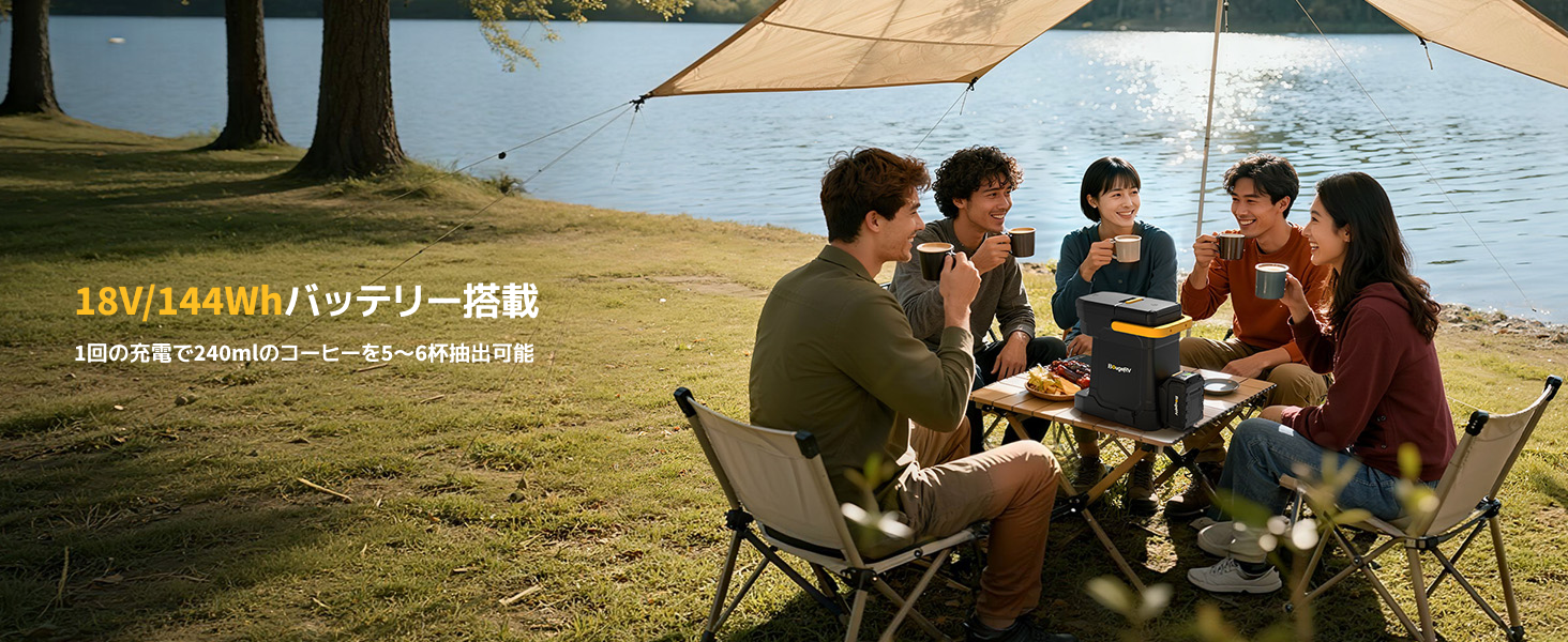 アウトドアでのコーヒー体験には、家用コーヒーメーカーのような本格的な味わいを再現することが難しいという課題がありました。本製品は、着脱式バッテリーを搭載し、電源がない場所でも使用可能。さらに軽量・コンパクトな設計と簡単な操作性により、キャンプやピクニックなどの場面でも、自宅と同じような美味しいアメリカンコーヒーを手軽に楽しめます。