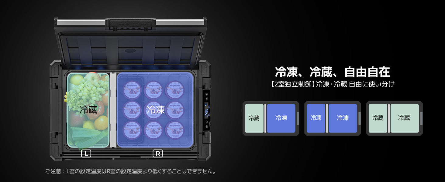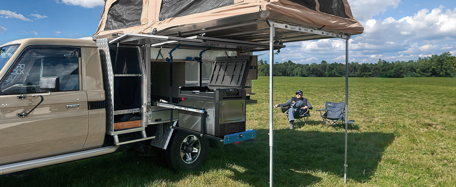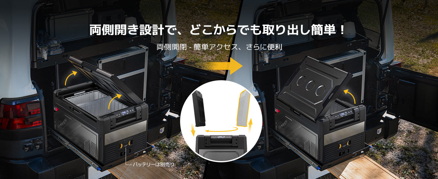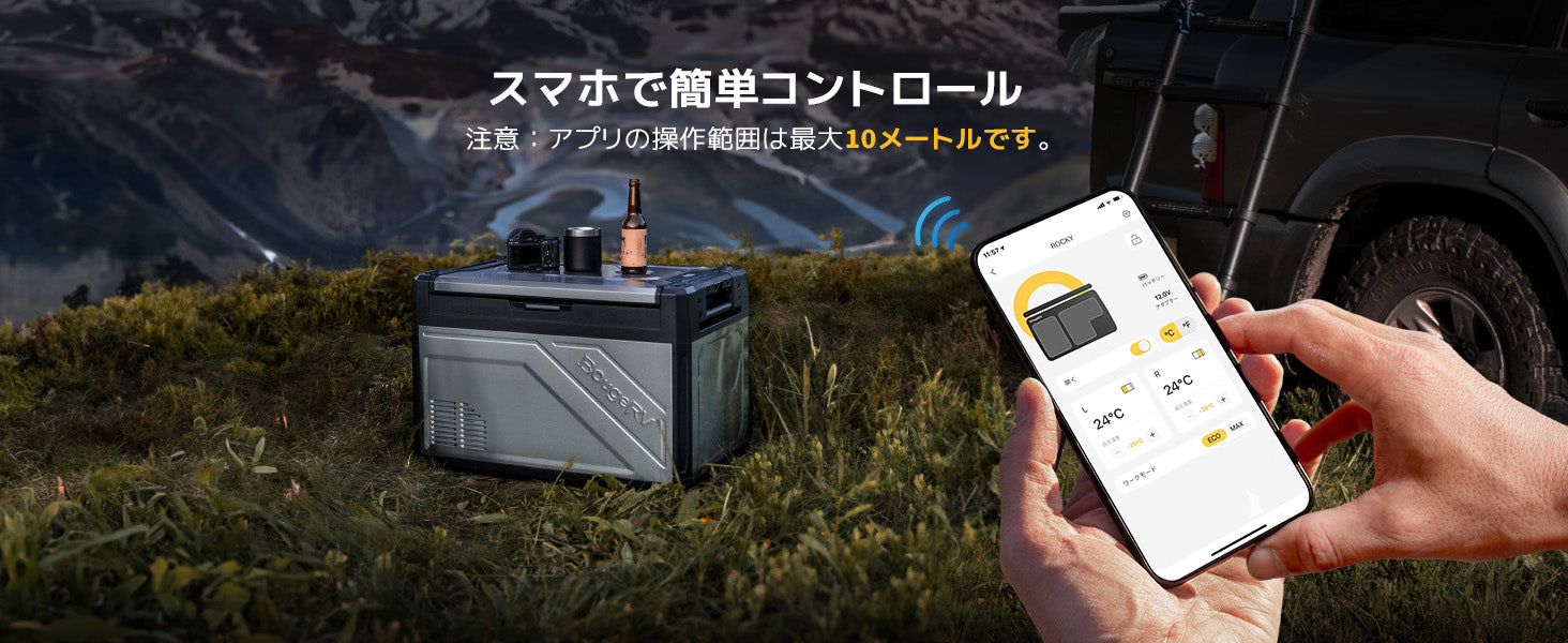 Rocky2車載冷蔵庫は高級感あるメタルボディに、高効率エココンプレッサーと多層構造断熱材を組み合わせ、43℃の炎天下でも-20℃を安定持続。キャンプや車中泊はもちろん、日常使いまで、真夏の車内でも「冷たさ」を諦めない一台です。