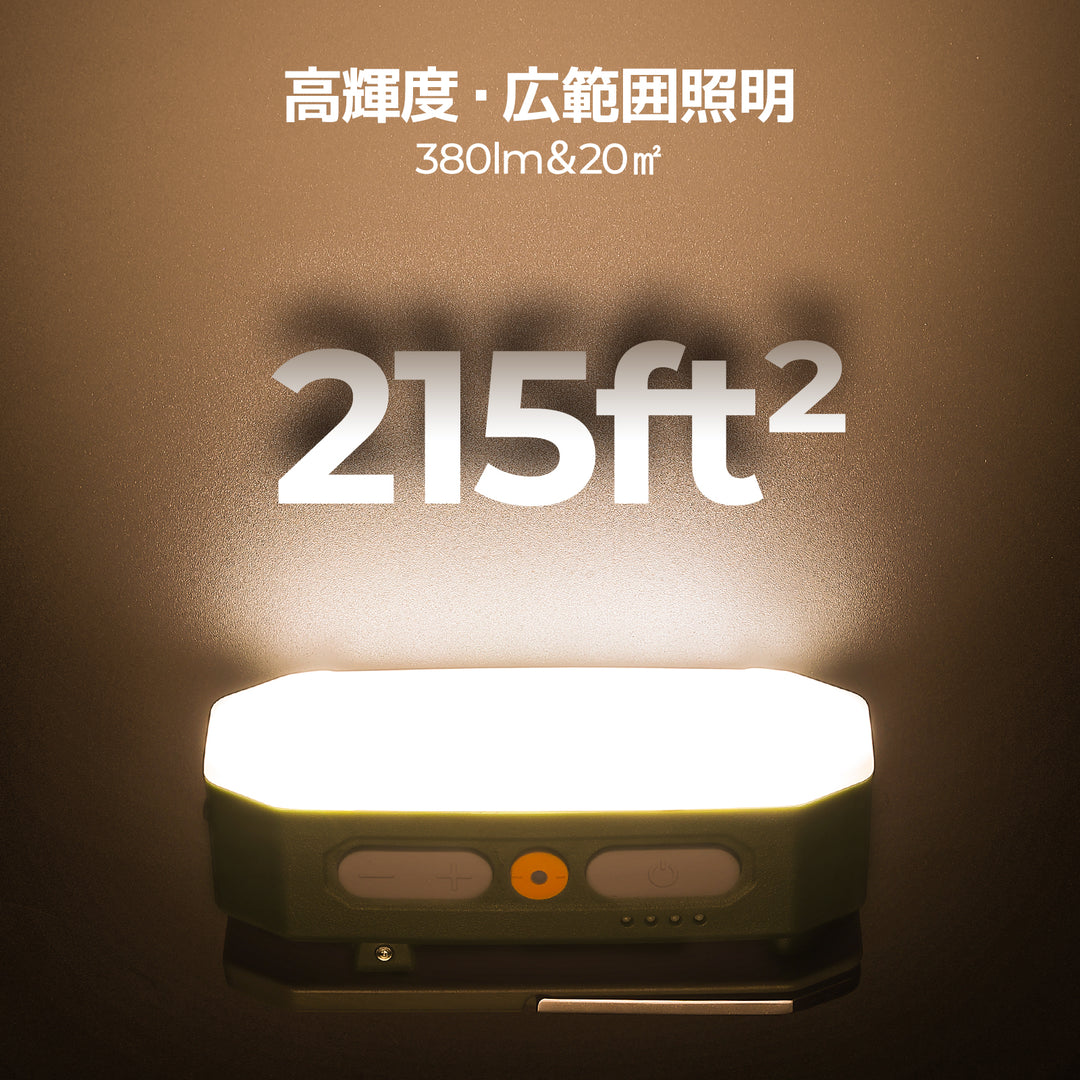 380lm/20㎡照射可能。2-3人用テント対応。USB-C充給電&緊急充電器化。SOSモード搭載!