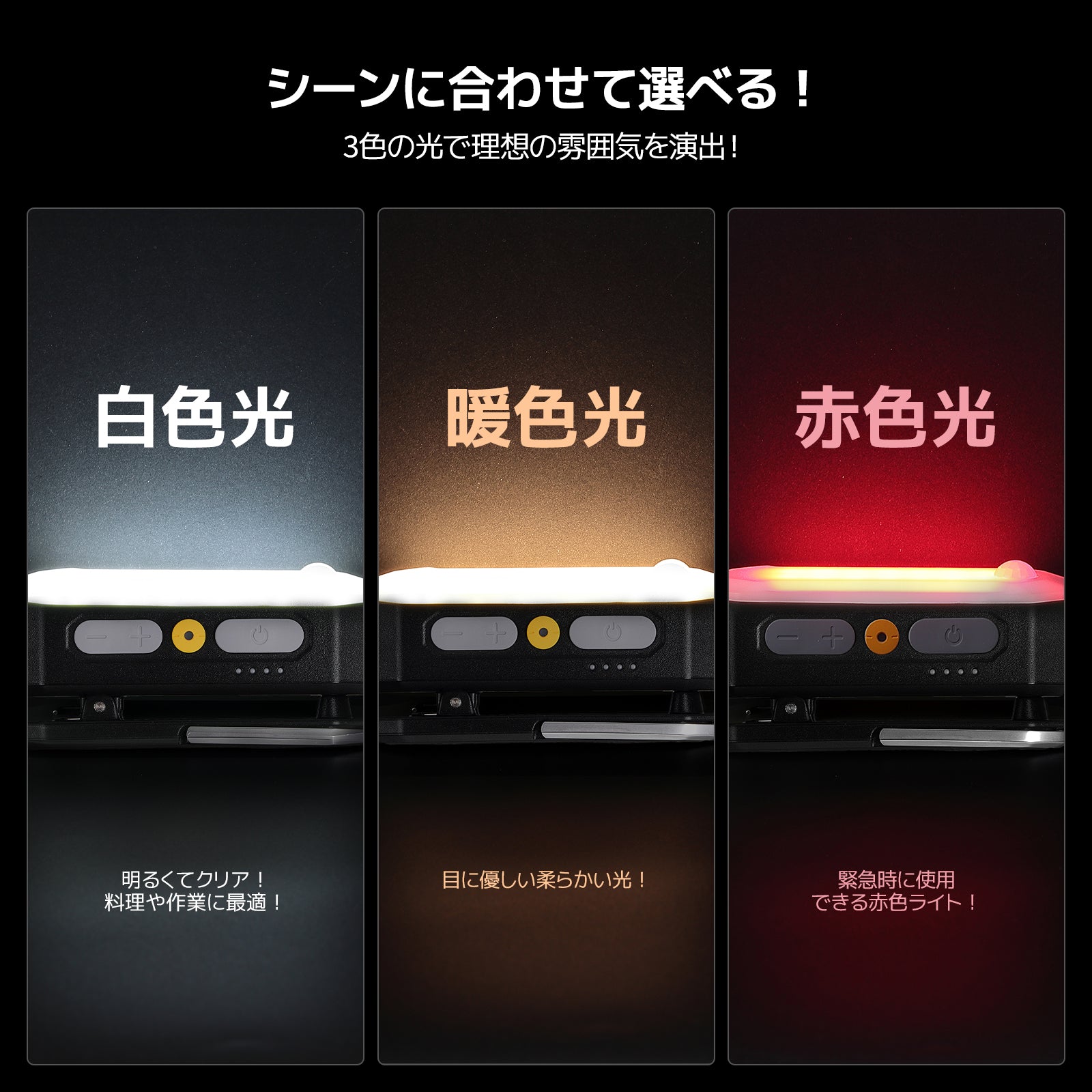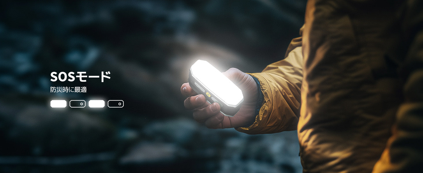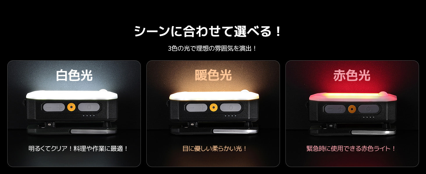 調光モード、色温切り替え(6500K/2500K/1000K)、SOSモードなど多彩な点灯モードが搭載されているため、様々な用途やシーンに合わせた最適な照明を選ぶことができる。