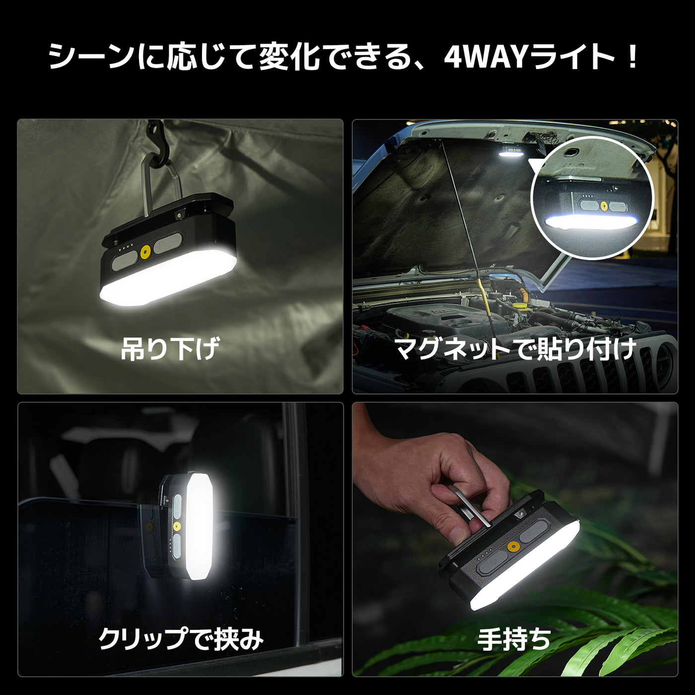 多機能な取り付け方法(フック、マグネット、クリップ)が搭載されているため、非常灯やクリップ ライトとしても自由自在に活用可能。あらゆるシチュエーションで最適な照明を実現。